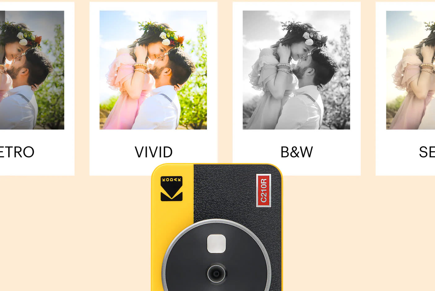 Mini Shot 3 Retro има винтидж дизайн и ти предоставя инструменти в приложението за филтри, рамки и колажи. Персонализирай преди да отпечаташ — бързо и лесно.