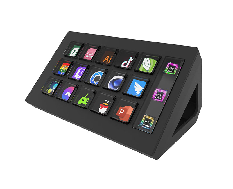 С 15 LCD бутона можеш да активираш много действия - автоматизирани публикации в социалните мрежи, за да информираш феновете си, че си онлайн, настройка на звук, заглушаване на микрофон, управление на осветление и други. Визуалната обратна връзка потвърждава всяко действие!